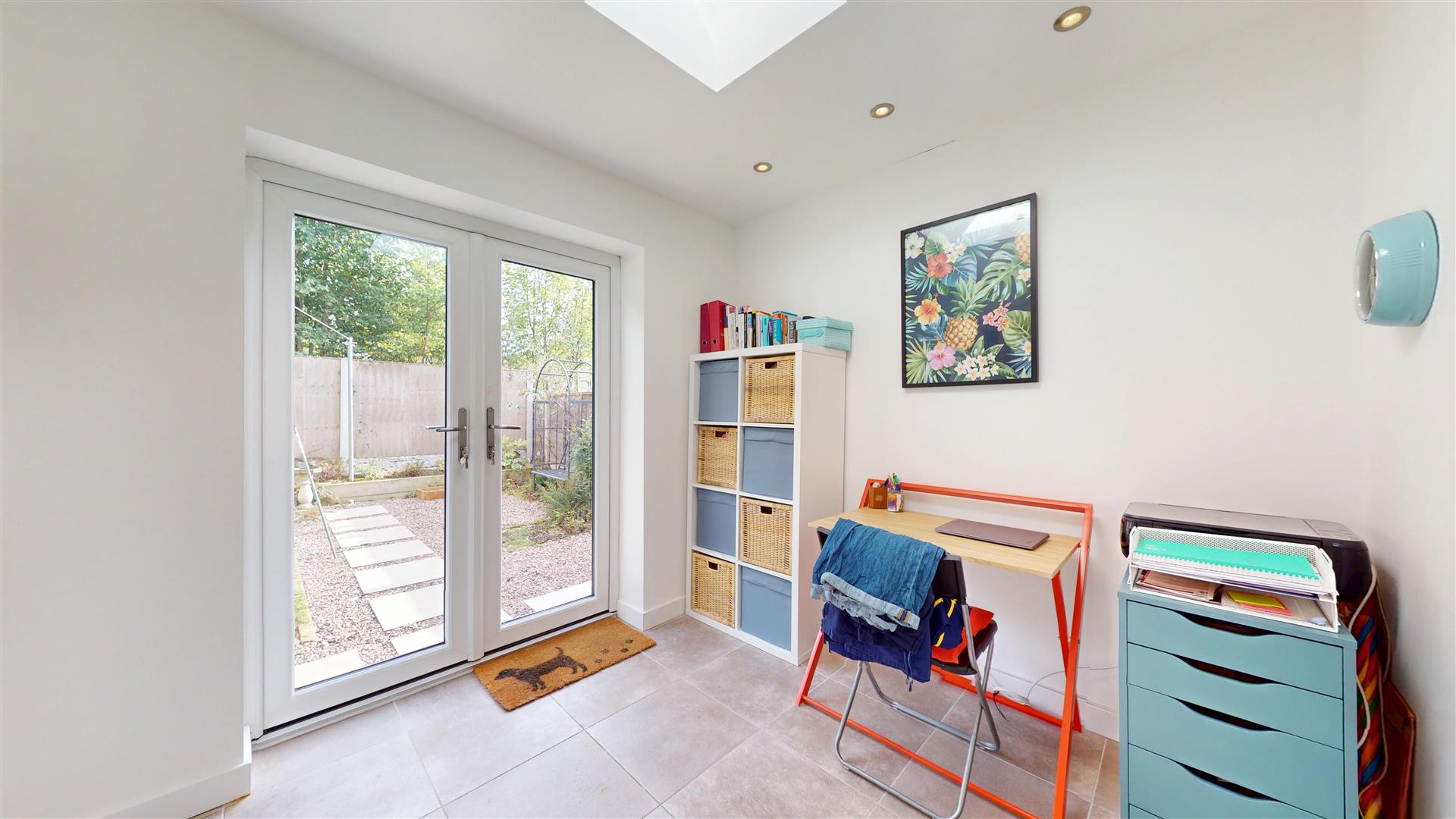 Refurbished with new lantern roof with inset lighting, double glazed French doors leading to the rear garden, floor to match kitchen and utility, panelled radiator, door to garage.