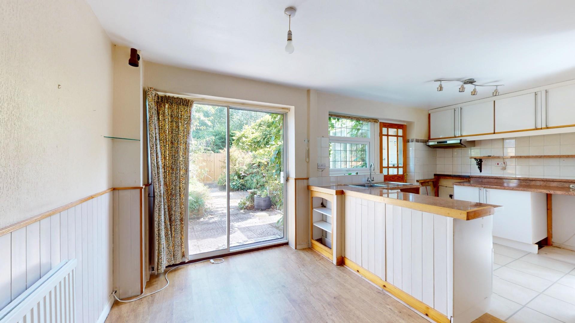 To the dining area is a woodgrain effect floor finish with double glazed sliding patio window opening to the rear and enclosed understairs cupboard, panelled radiator.