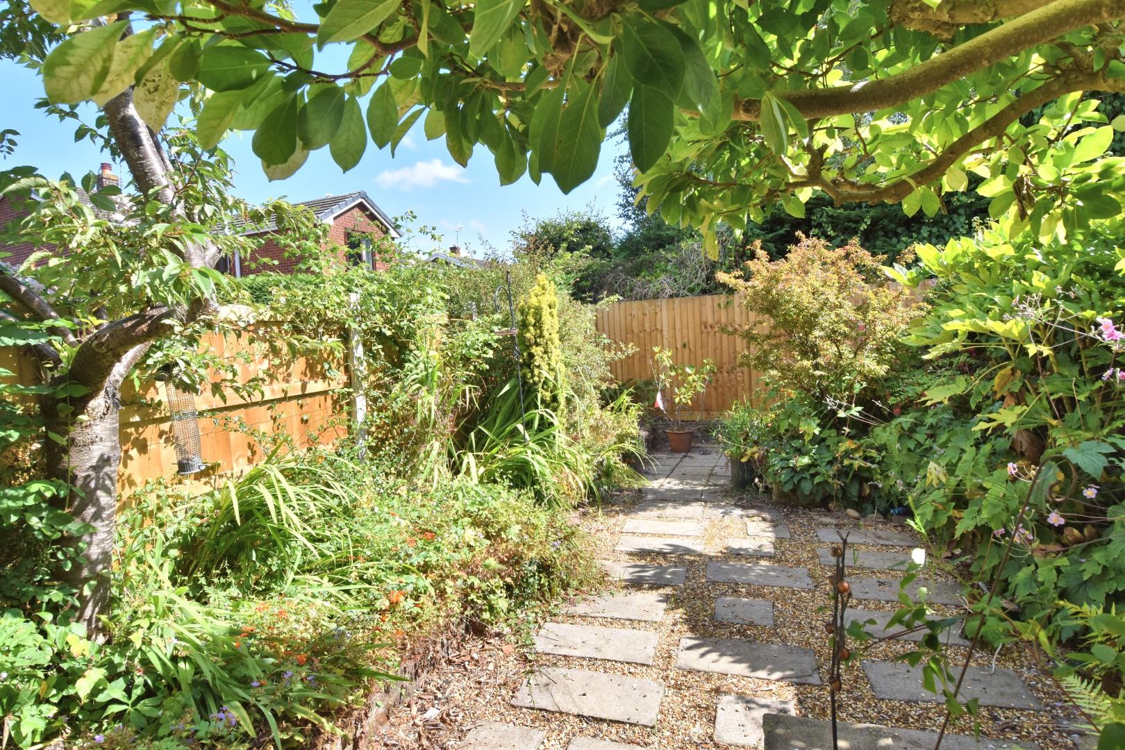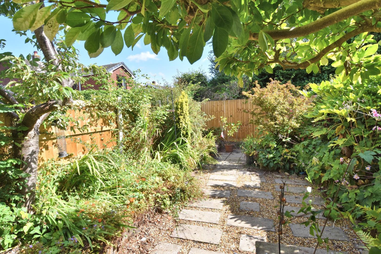Enclosed and private garden to rear, designed for low maintenance with flagged and gravelled areas, a large selection of shrubs and plants which extend down to the rear of the garage.