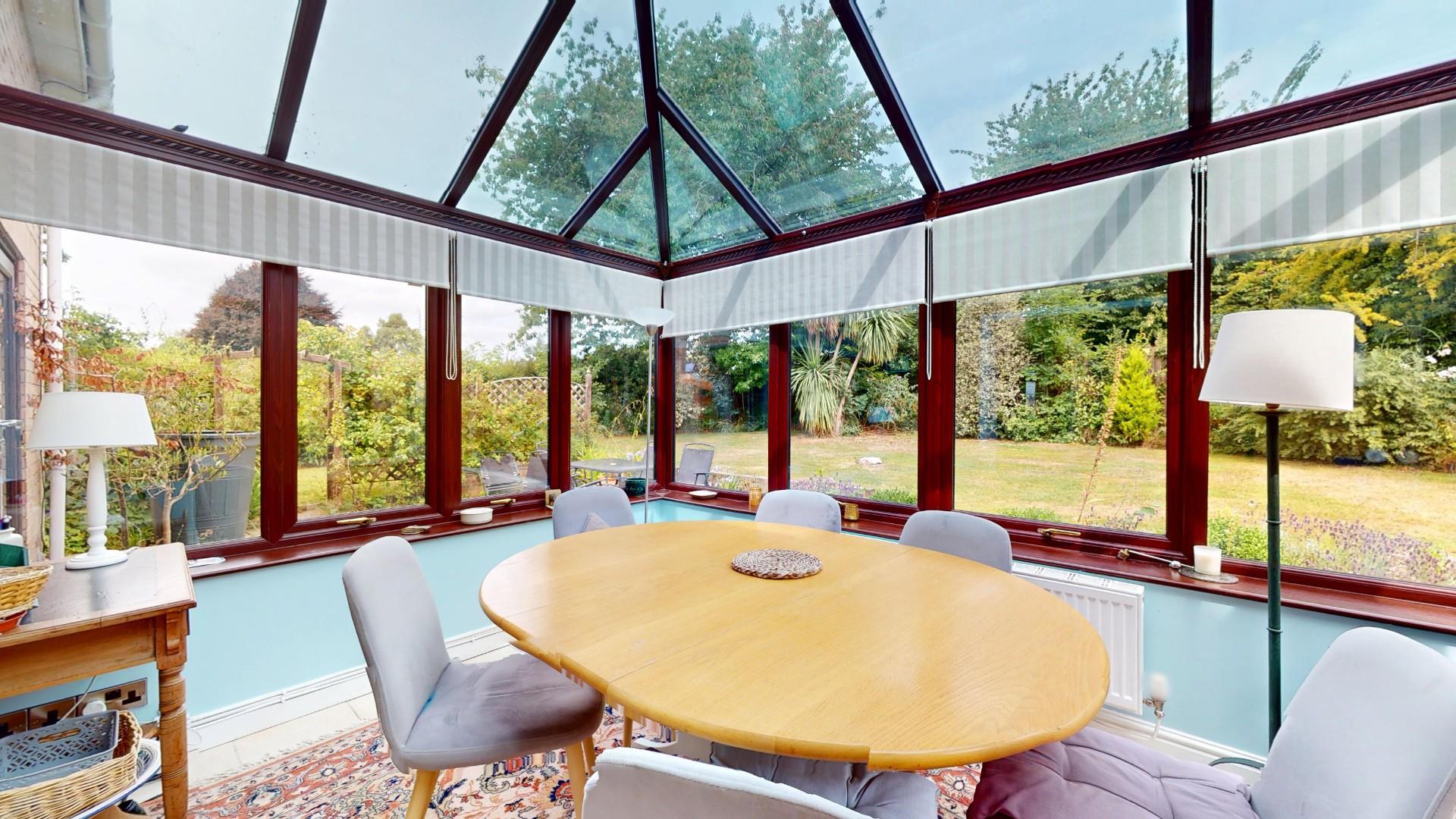 Designed to take full advantage of the pleasing aspect over the rear garden with double glazed windows to three sides to include French doors leading out, pitched and glazed roof, it has a ceramic tiled floor and radiator.