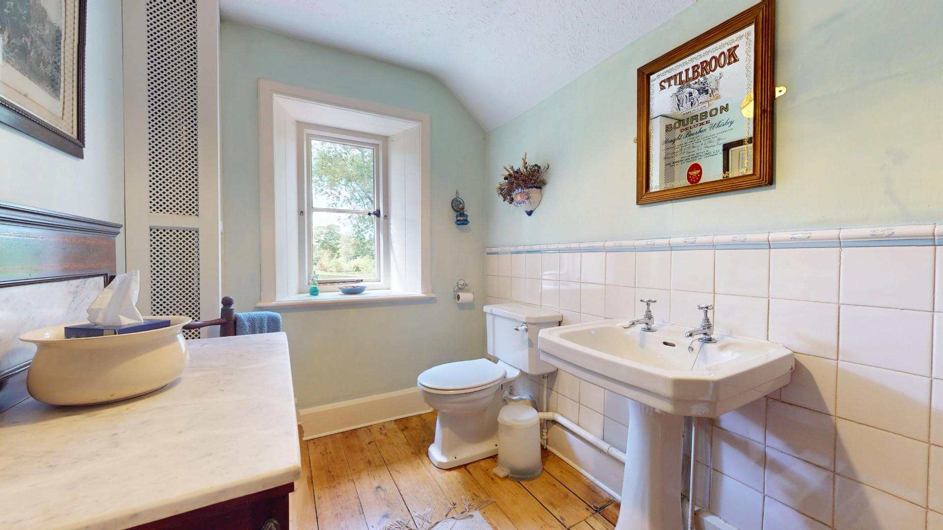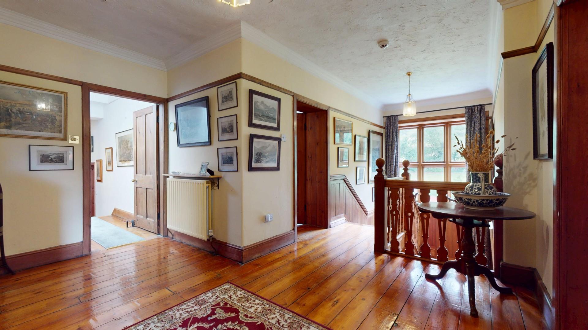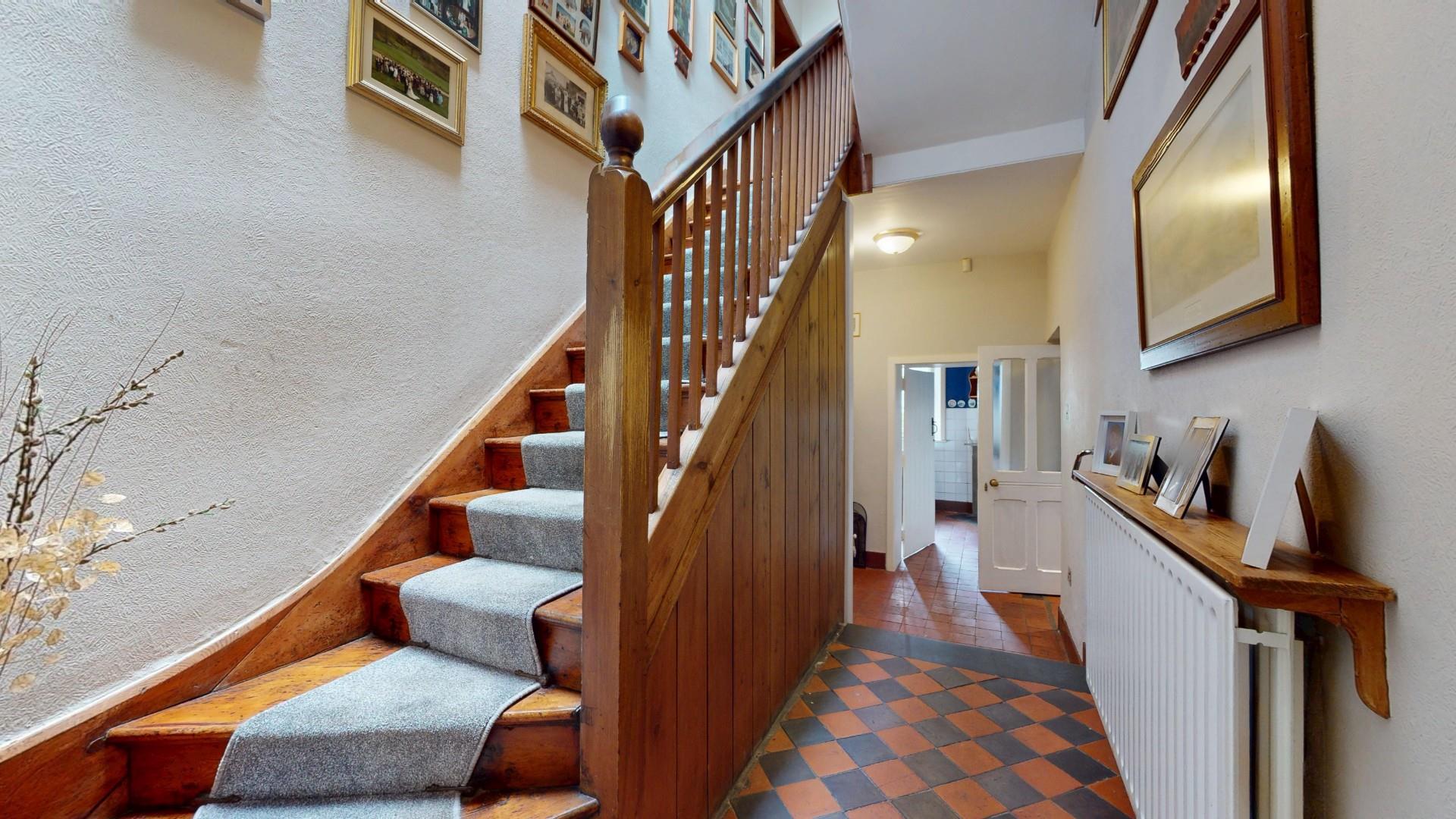 The house is approached via an out-built porch opening to a large central reception hall with a fine tiled floor and impressive hardwood turned staircase. There is a cloakroom and access through to the inner hallway leading to the secondary staircase and northern side of the house.