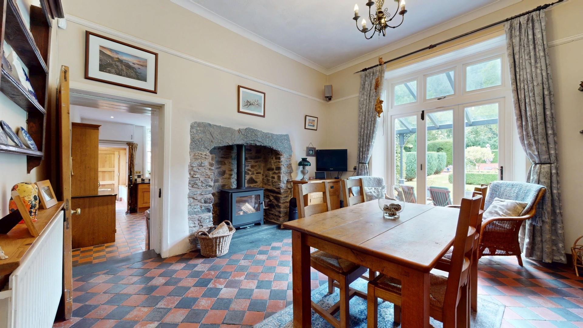 There are two elegant reception rooms with pleasing southerly views along the Pennant Valley with fine high ceilings, lovely pine windows with panelled surrounds and in-set shutters, a particular feature to the dining room with a fine bay window. There are original fireplaces with a traditional style Victorian fireplace with heavy hardwood surround to the sitting room and a handsome white marble fireplace to the dining room.