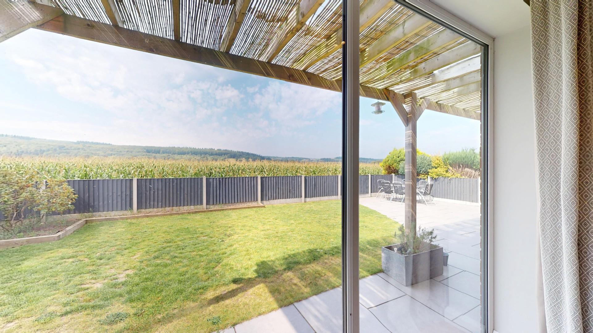 Thereafter, there is access to either side of the house with a secluded patio to the rear of the garage which thereafter extends across the rear elevation of the house with a large timber framed pergola providing shade to both the day lounge and kitchen. The patio extends out to the rear boundary in part together with a shaped lawn and low level fencing to three sides.
