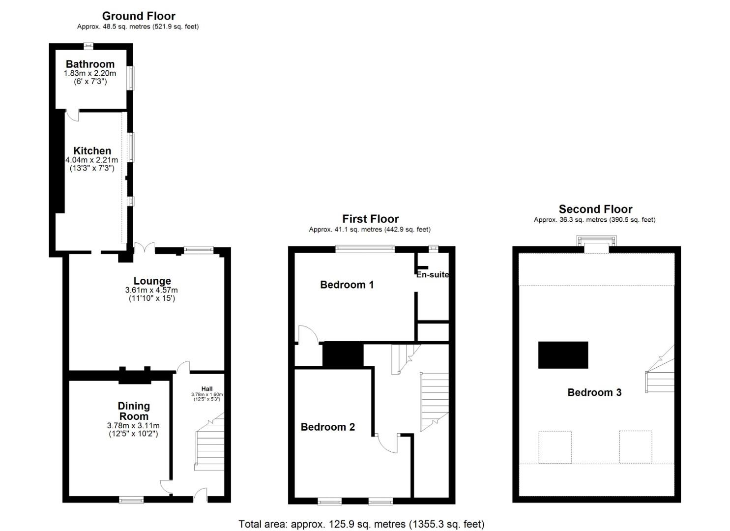 A large loft conversion with a central and substantial central chimney breast with former fireplace (not in use), hipped dormer affording pleasing westerly views towards the historic jail and two architectural Velux roof lights to front, exposed purlins, pine flooring, two panelled radiators.