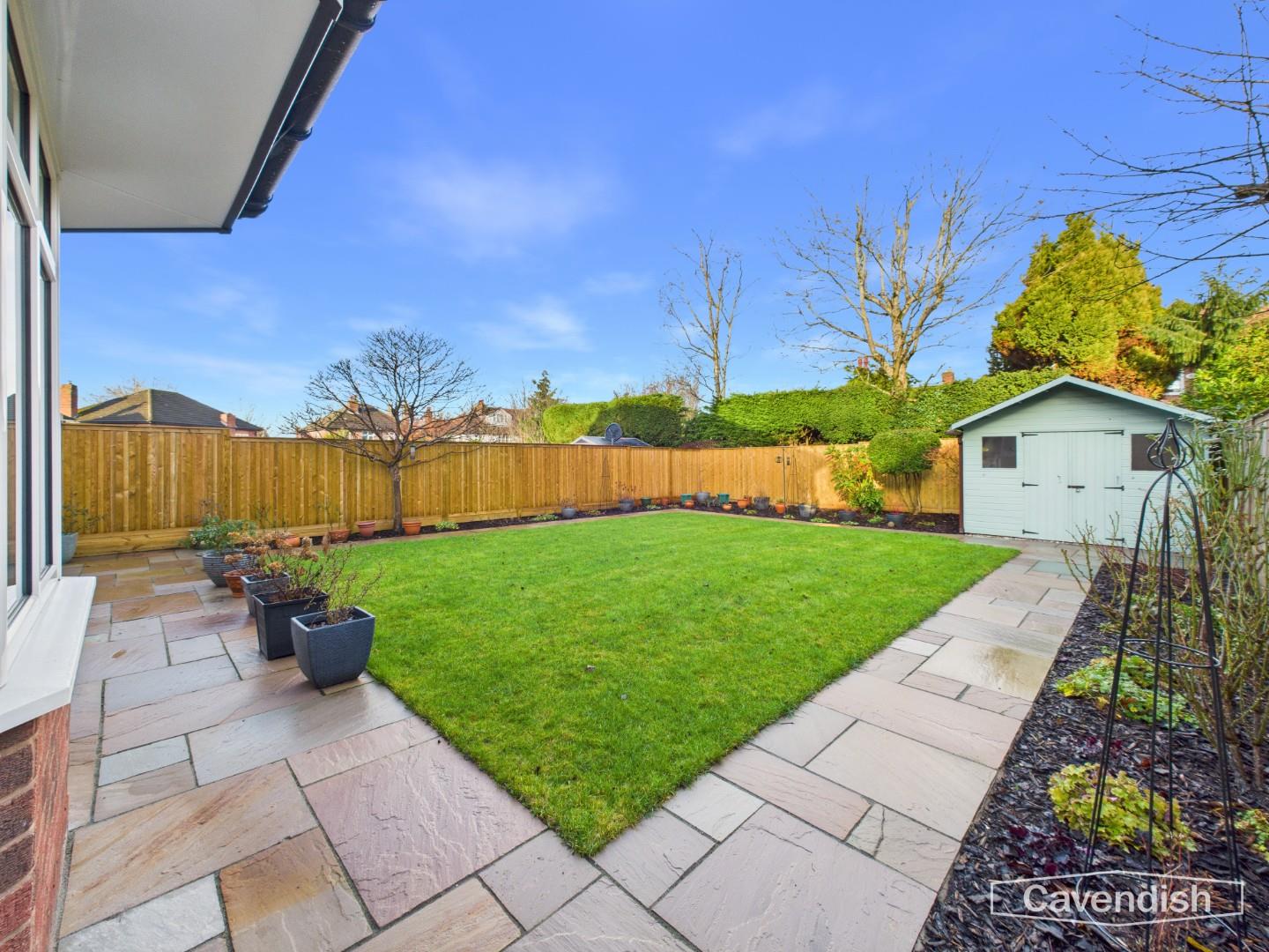To the rear, the garden has been professionally landscaped and designed for ease of maintenance with an extensive Indian stone flagged patio and pathways, barked borders with small shrubs and trees, and a neatly laid lawned. The garden is fully enclosed by 'Jacksons' wooden panelled fencing and enjoys a good degree of privacy. Timber built garden shed.