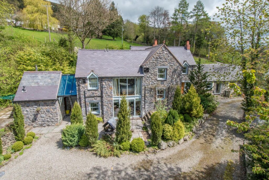 ***VIDEO TOUR AVAILABLE***AN IMPRESSIVE 4 BEDROOM DETACHED HOUSE GREATLY EXTENDED AND RE-MODELLED TO PROVIDE A VERSATILE FAMILY HOME COMBINING MODERN AMENITY WITH ORIGINAL FEATURES, SET WITHIN ABOUT 0.78 ACRES OF BEAUTIFULLY LANDSCAPED GROUNDS BOUNDED BY THE RIVER CLWYEDOG JUST ON THE PERIPHERY OF THE VILLAGE SOME 4.5 MILES FROM RUTHIN.This very attractive and unique home was originally a small house with adjoining barn, greatly extended and converted by the present owners to a spacious and interesting home. Whilst affording a wealth of original features the greater part of the house has under-floor heating and an air source heating system and high levels of insulation to reduce heating costs to a minimum. The grounds are a delight having been landscaped and developed to provide a very private environment with bespoke greenhouse, kitchen garden, wide informal lawn with herbaceous borders, laurel screen hedging, summerhouse and two large workshops/stores, and further gardens which adjoin and leading down to the River which extends along the length of the western and southern border.Entrance hall, cloaks/boot room, splendid lounge to the former barn with high vaulted ceiling and inglenook, study, dining room, bespoke ‘Tegla’ kitchen with Aga, day lounge, utility room and stores, First floor landing with lantern roof, bedroom 1 with en-suite, 3 further bedrooms and bathroom. Sweeping drive and turning area, Glass covered area inter-connecting with the boiler room/stores.INSPECTION HIGHLY RECOMMENDED.
