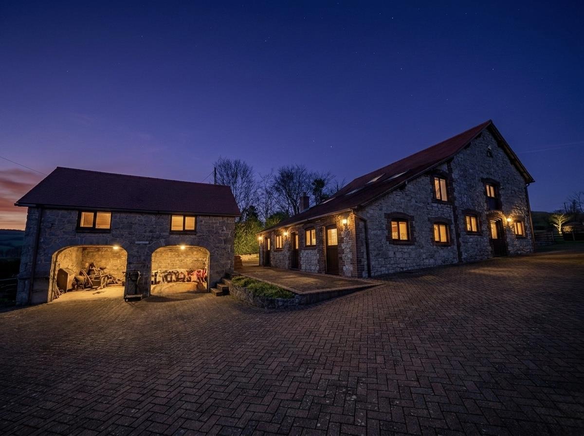 The property has a right of access over a private driveway to the front of the original farmhouse which leads through to a wide brick paved driveway forming part of the Yr Hen ty Llaeth. The driveway extends to the front and side of the property providing ample parking for several vehicles as well as access to the garage.