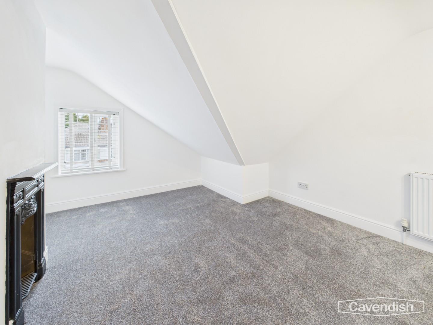 UPVC double glazed window overlooking Ermine Road, decorative cast-iron fireplace, single radiator, and wall light point. (With restricted head height).
