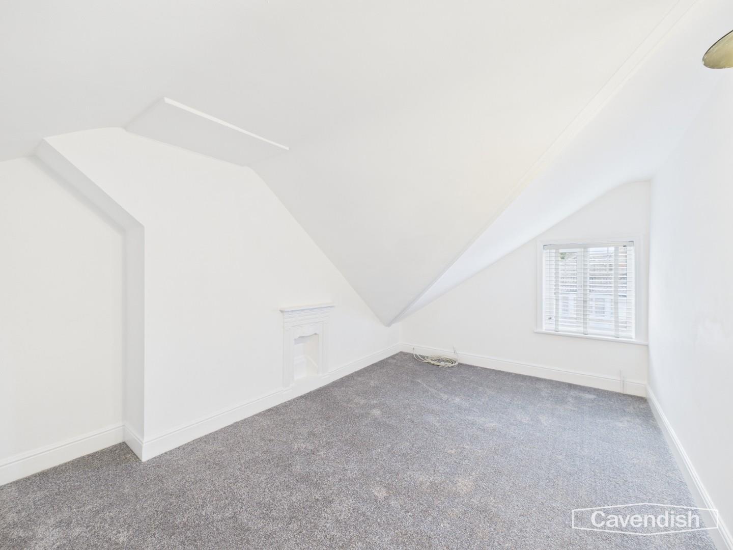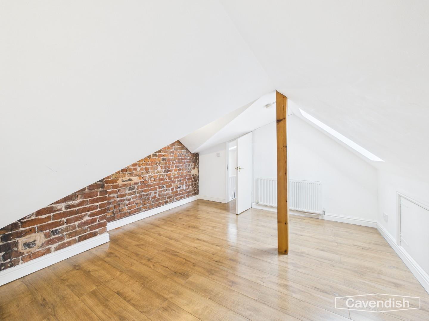 Double glazed Velux roof light, two ceiling light points, smoke alarm, wooden pillar, single radiator with thermostat, laminate wood strip flooring, access to eaves storage area, feature exposed brickwork, and decorative secondary glazed coloured glass leaded semi-circular window. (With restricted head height).