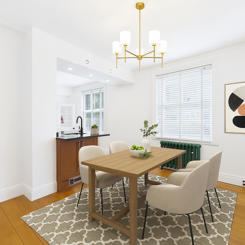 Two UPVC double glazed windows, coved ceiling, mains connected smoke alarm, ceiling light point, column style radiator, and oak wood strip flooring. Part-glazed door to utility room, and open-plan to the kitchen.