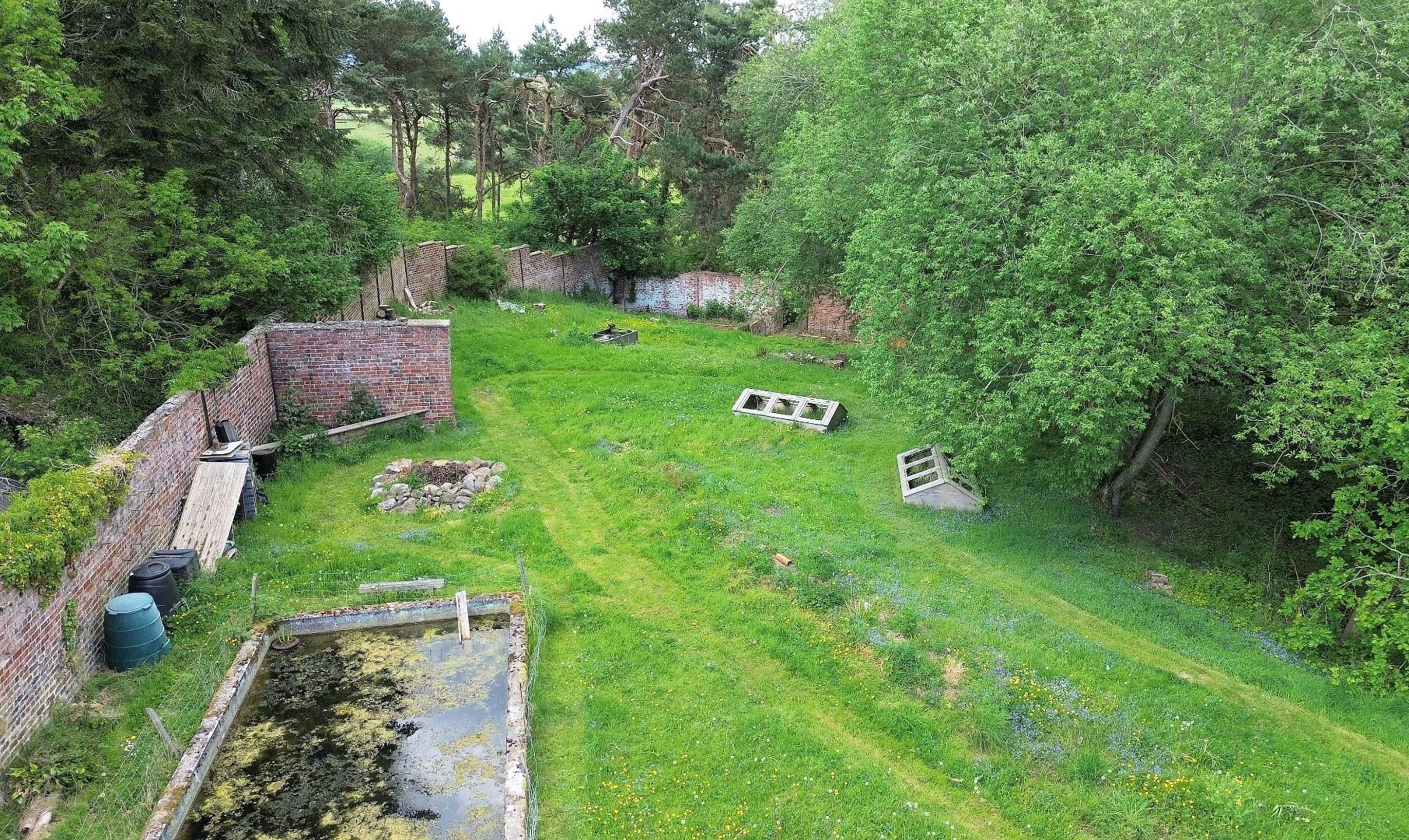 Informal gardens extend to the front of the property with well stocked mixed border of shrubs and herbaceous perennials surrounding a lawned area, and a selection of mature trees. An inner, walled courtyard style garden (currently in use as a vegetable garden) extends to the front of the property with gated access to the yard and side of the house. To the side of the house there is a purpose built timber framed cabin with shower and w/c, with power and water connected. There is a separate wooden summerhouse and useful timber framed garden store. To the rear of the detached barn are extensive informal walled gardens with a pond and a lower courtyard garden (formerly the site of a greenhouse), various mature trees and views across to surrounding countryside.