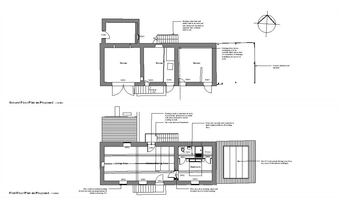 A substantial two storey stone and slated building with planning for conversion to provide additional accommodation. Presently comprising:
