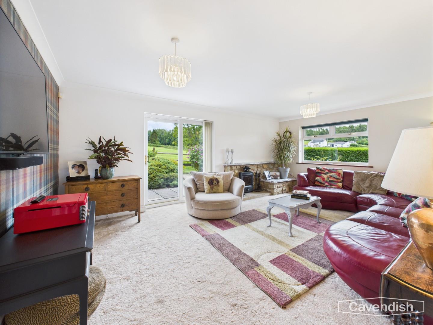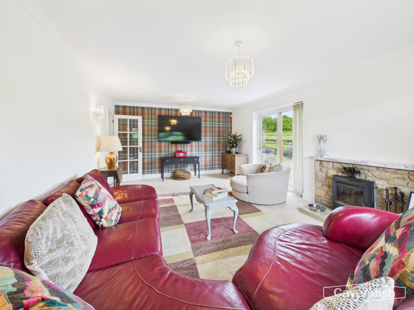 Bedroom three, currently used as a dining room, offers flexibility with carpeting, dual wall lights, and a large window providing field views. A glazed internal feature window allows borrowed light from the hallway, currently covered but easily reopened if desired.