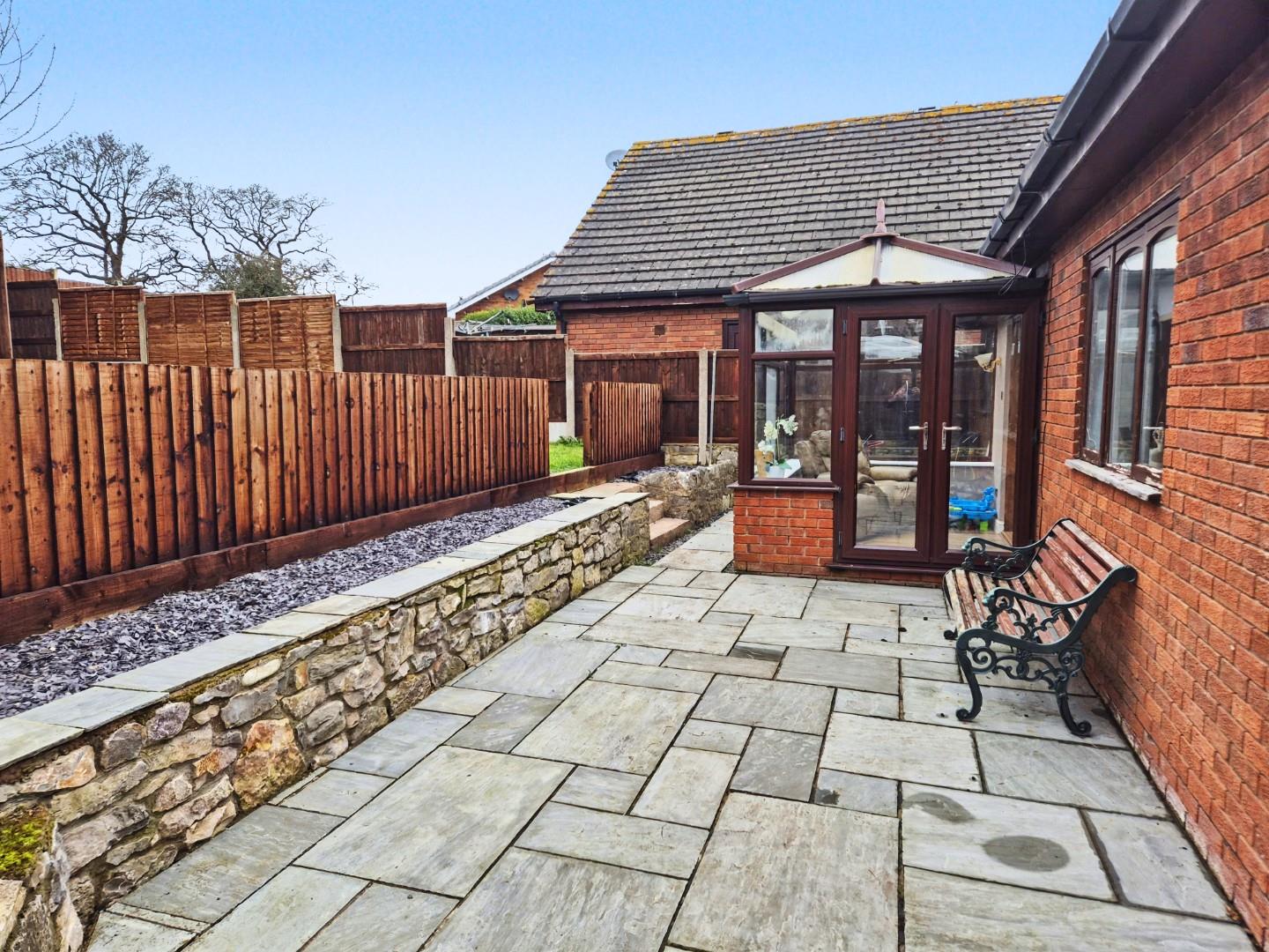 The property stands in a small cul de sac just off the centre of the village. It is approached over a private driveway to the right hand side of which is a long gravelled area which forms part of the property and provides an ideal area for parking additional vehicles or caravan. Beyond there is a tarmacadam driveway which extends across the full width of the house providing ample space for parking. Access to one side leading to the rear where there is an enclosed and quite private garden with wide patio area adjoining the conservatory together with low level wall and steps leading up to a lawned area.