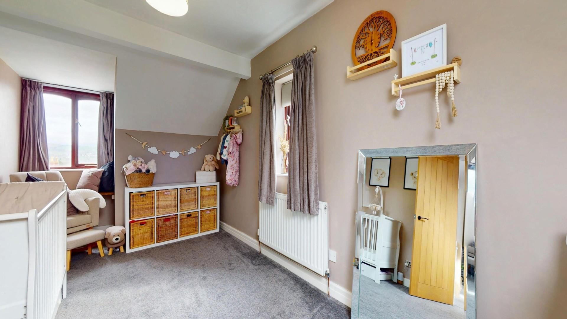 Double glazed window to front with views across the village towards the Clwydian Hills, built-in double door wardrobe, further window to gable, panelled radiator.