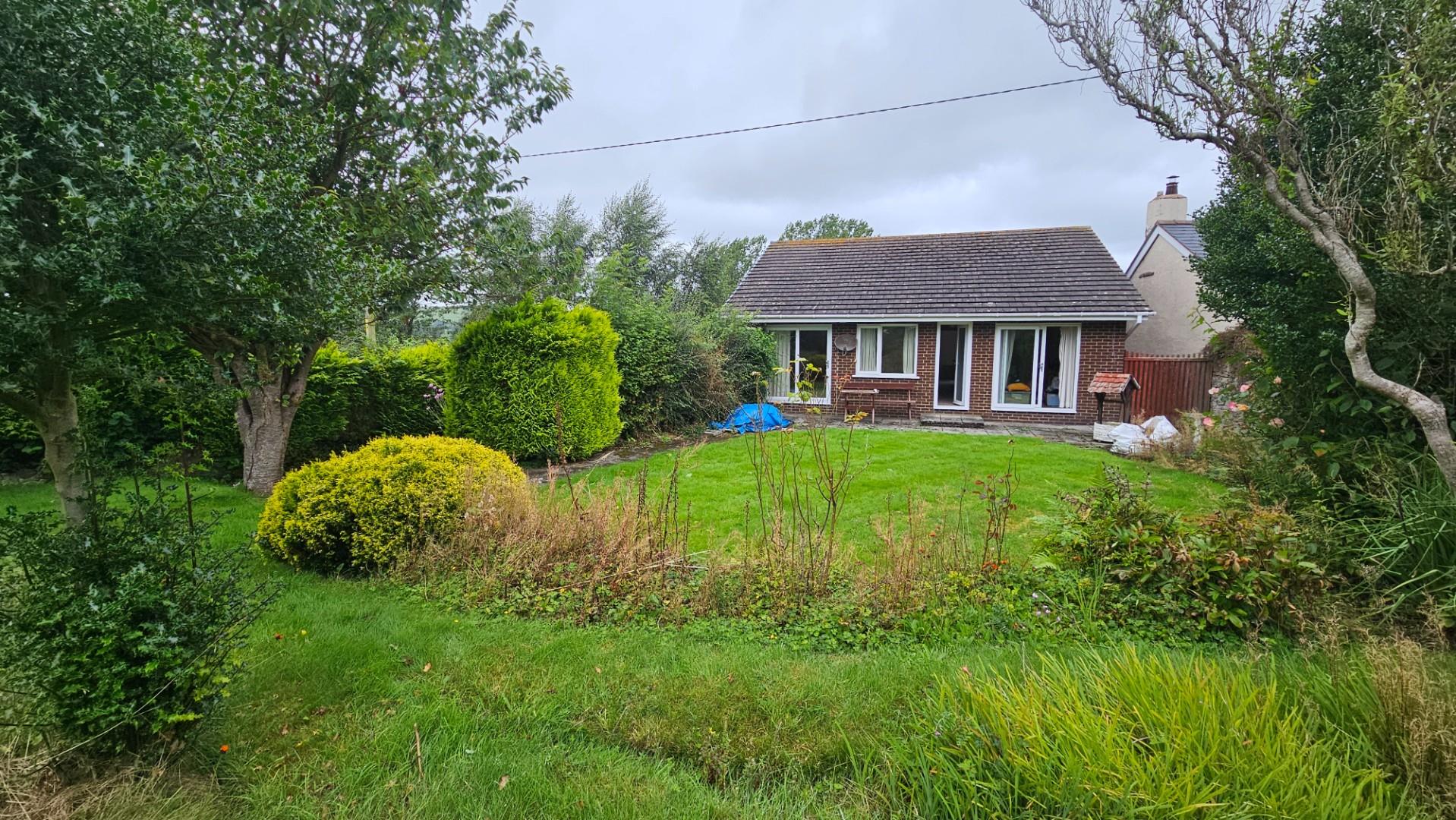 A SUBSTANTIAL 3 BEDROOM DETACHED BUNGALOW WITH LARGE LOWER GROUND FLOOR BASEMENT WITH POTENTIAL FOR CONVERSION INTO A LARGE TWO STOREY HOUSE SUBJECT TO CONSENT, SET IN AN ELEVATED SETTING WITH LARGE AND QUITE PRIVATE GARDENS ON THE PERIPHERY OF THE VILLAGE.The Bungalow was designed to take full advantage of the views with the accommodation arranged above a full size basement proving a large garage and workshop. The bungalow is in need of refurbishment and provides an opportunity to re-model and possibly combine part of the ground floor for living space. It affords an entrance hall and central lobby, spacious lounge with two large picture windows, kitchen/diner, 3 bedrooms and bathroom.Lower ground floor measuring 31ft x 28ft overall with high headroom, garage door leading in from the front with inspection pit, workshop area with side access. Shared access drive with parking to front, extensive lawn gardens to rear.