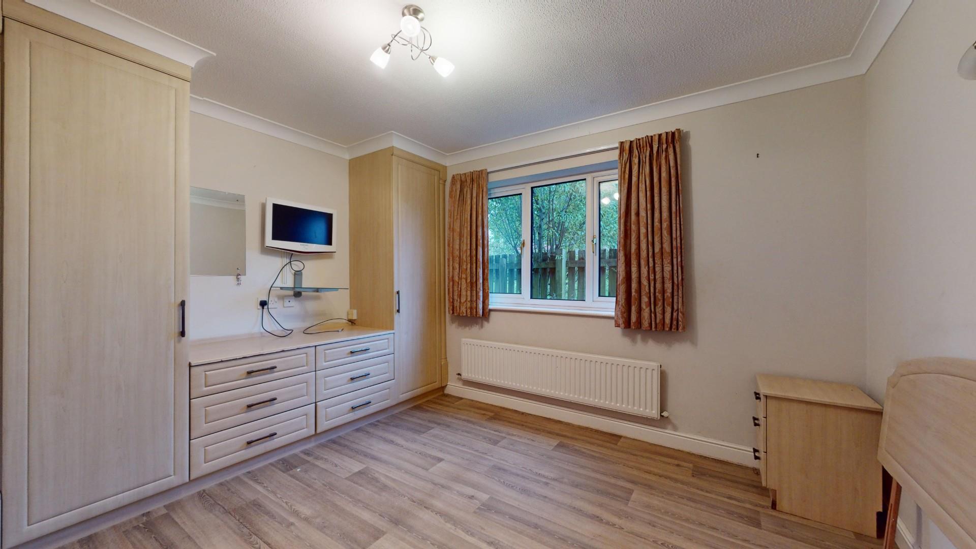 Double glazed window to the side elevation, wood effect vinyl floor covering, range of fitted wardrobe units with light toned wood effect door fronts, matching chest of drawers and bedside cabinets. Coved ceiling, telephone point, TV aerial point and internal door to en suite.
