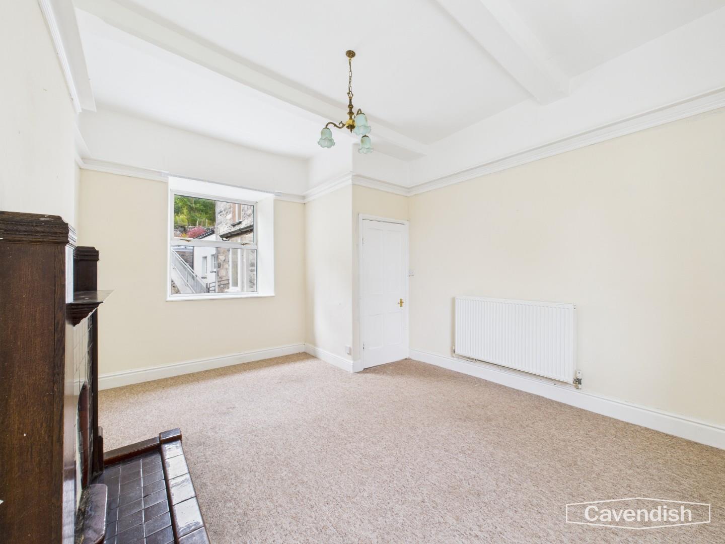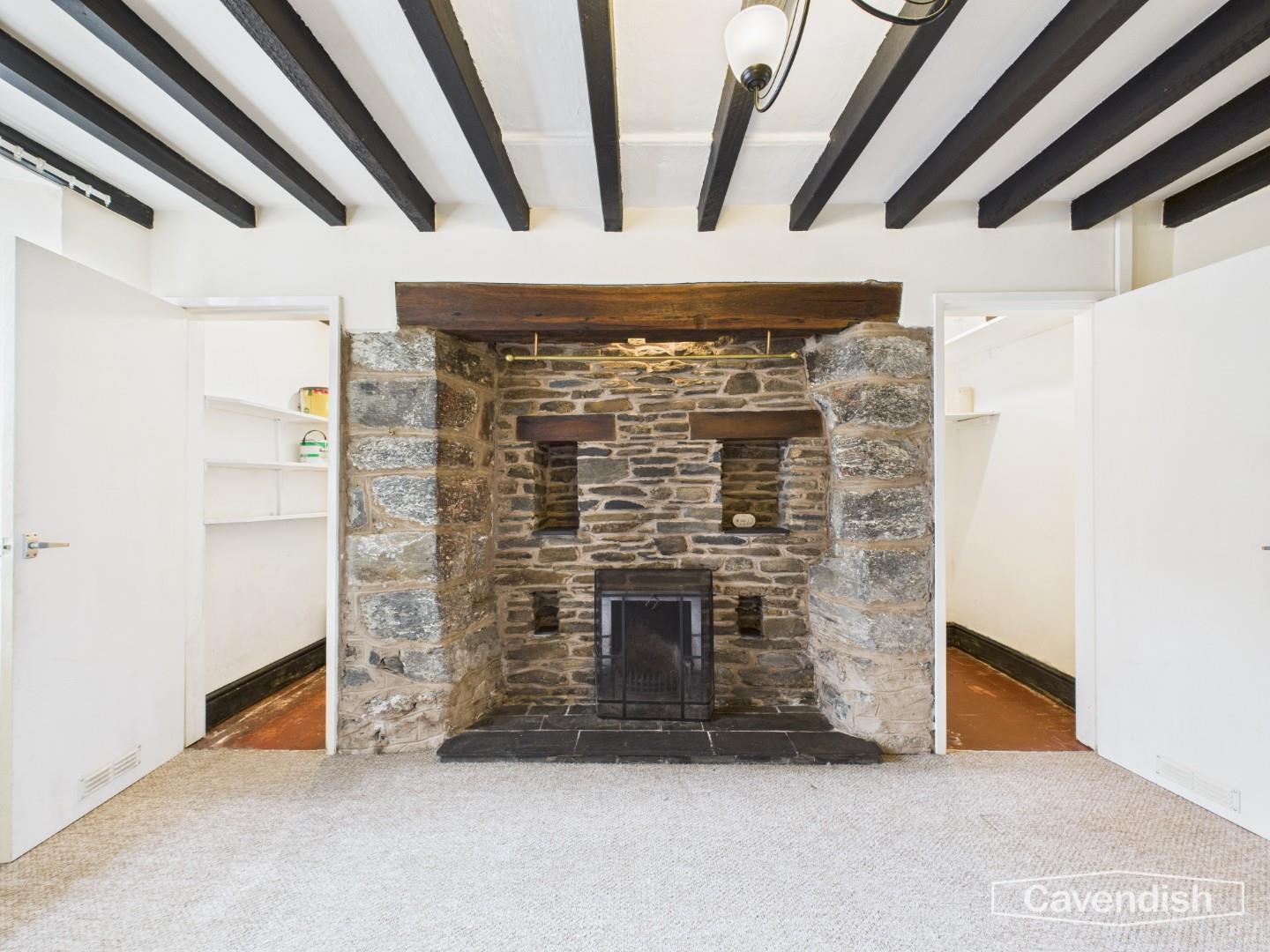 A charming character home set within generous gardens, offering spacious accommodation, period features, and views across the churchyard and surrounding hills.The property is approached through a gated front yard and opens into a welcoming hallway. Inside, the lounge boasts an exposed beam, feature fireplace, and large window, while the dining room enjoys twin glazed windows and a tiled fireplace. The kitchen is well-proportioned with ample storage, freestanding oven, tiled splashbacks, exposed beams, and a utility room.Upstairs, there are two double bedrooms with dual-aspect windows, built-in storage, and lovely outlooks over the front yard, rear garden, and churchyard. The family bathroom offers a bath, separate shower cubicle, WC, and sink with skylight and side window.Outside, the property benefits from a large rear garden, mainly laid to lawn with a central pathway, seating area, and views of the church. Outbuildings include a large store, log shed, and former external W/C, with two allocated parking spaces accessed via a shared path.