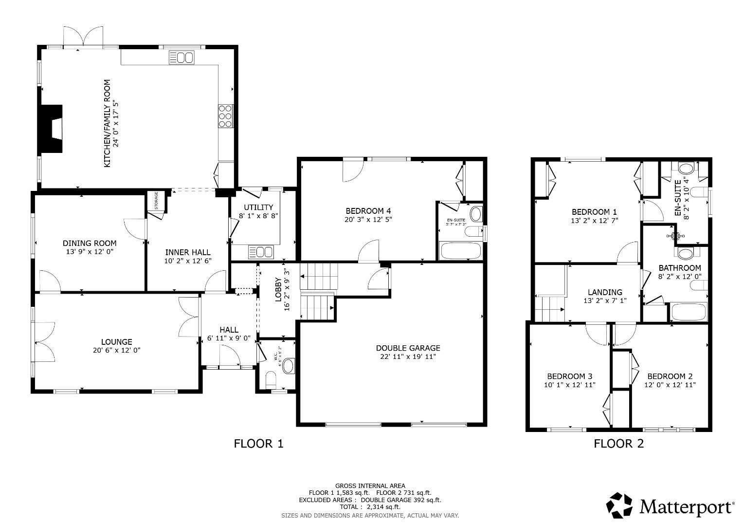 Two timber panelled and framed up and over doors leading to a spacious double garage with work bench to one end, modern Ideal gas fired combination boiler providing heating and hot water, personnel door leading through to the lower hall.