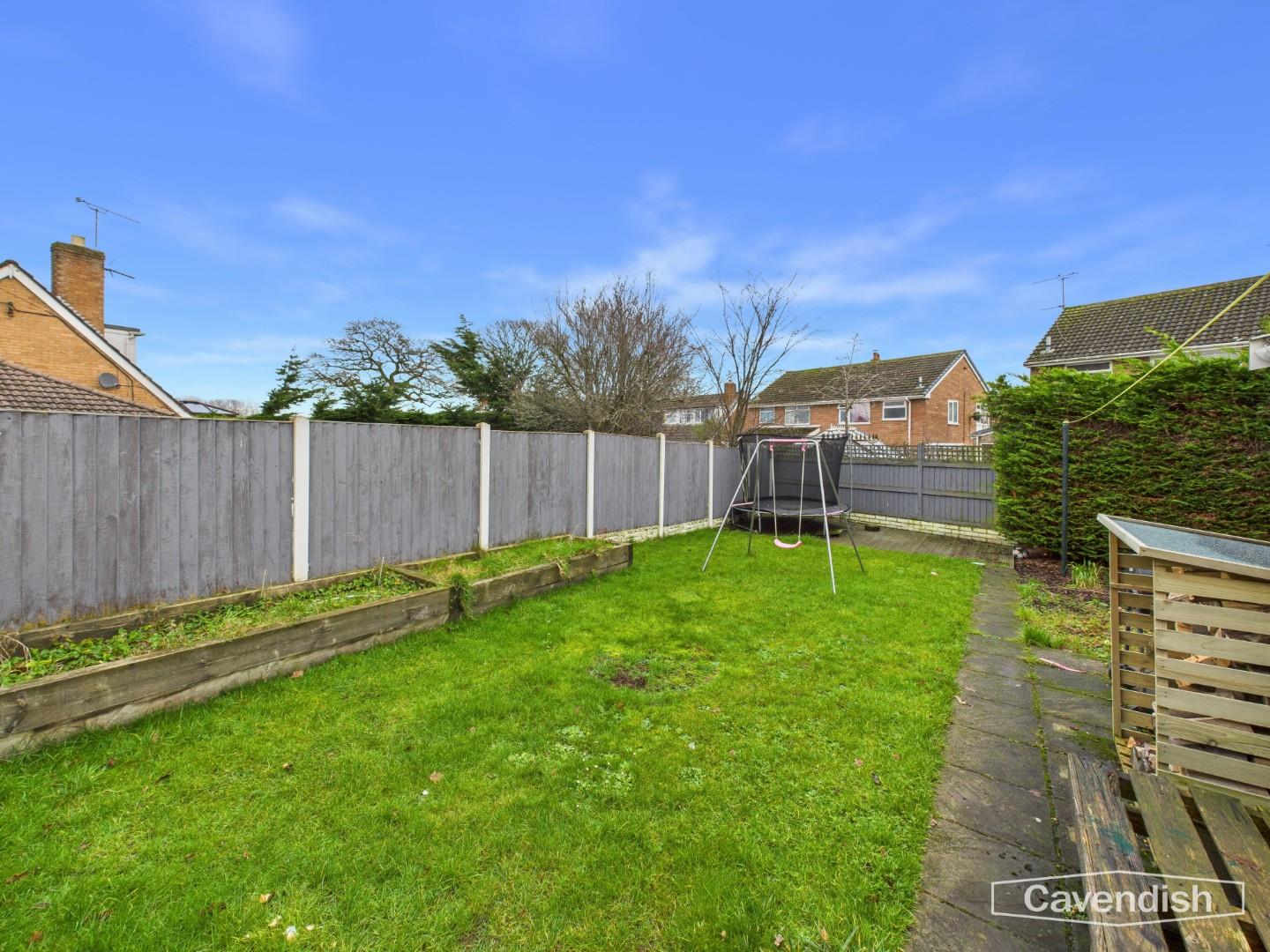 The rear garden is mainly laid to lawn and enjoys a good degree of privacy. A raised decked seating area sits at the bottom of the garden, ideal for outdoor dining and entertaining. To one side is a wood chipped area, while mature conifer hedging provides screening along the boundary. Paved pathways lead to a wooden gate, offering convenient access back to the driveway. A side entrance provides access to the garage and rear garden.
