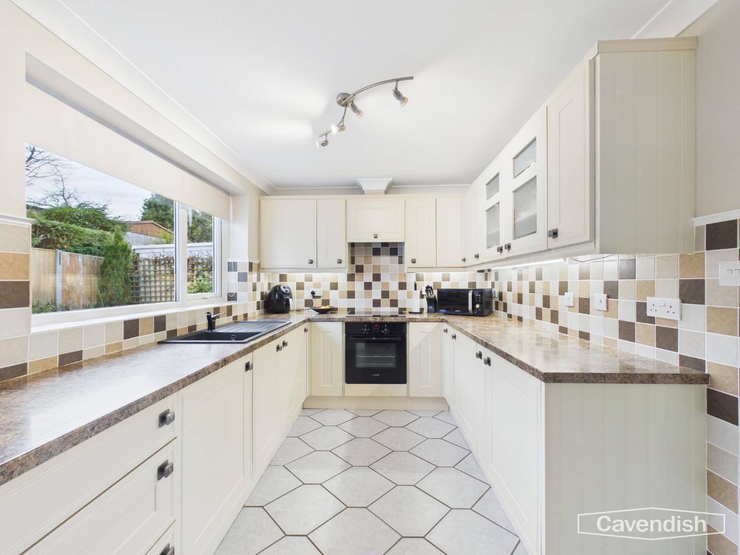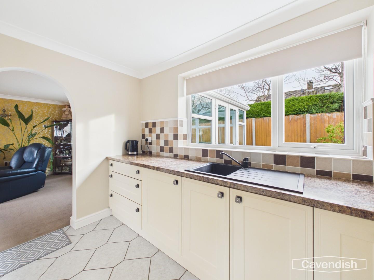 Fitted with an attractive range of cream fronted base and wall units with mottle effect worktops, composite sink unit with mixer tap and tiled splashback surround. Under cupboard lighting and integrated appliances comprising electric oven, touch control ceramic hob, cooker hood, fridge/freezer and washing machine. Tiled floor with underfloor electric heating and double glazed window overlooking the garden. Archway to living room.