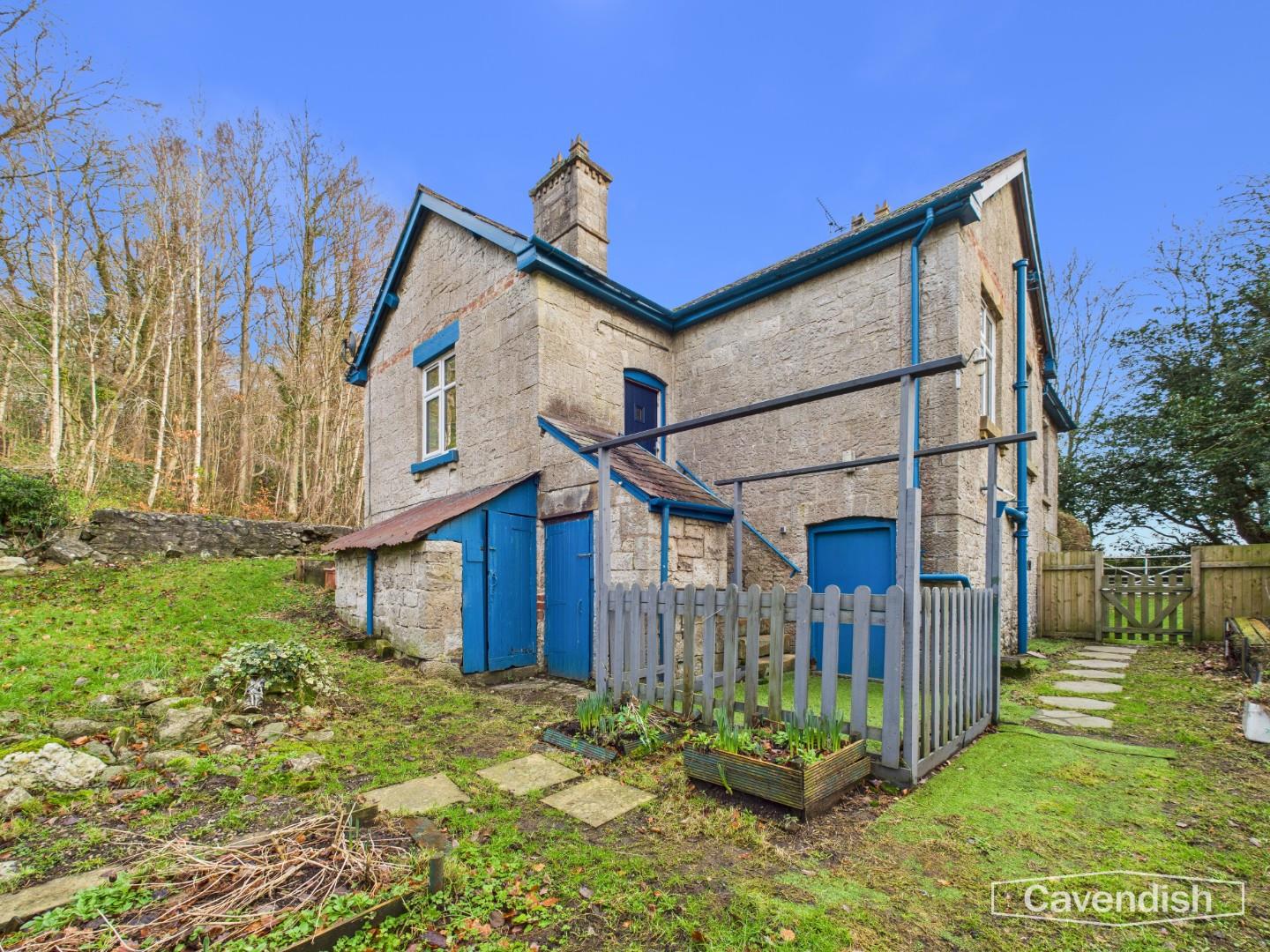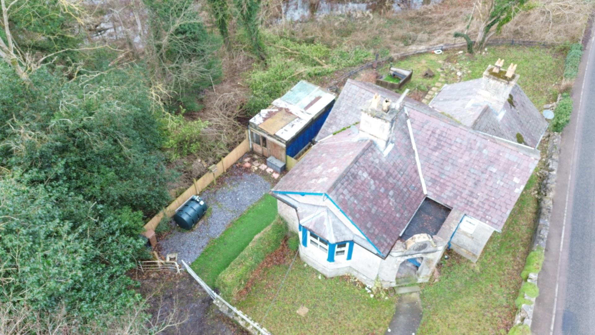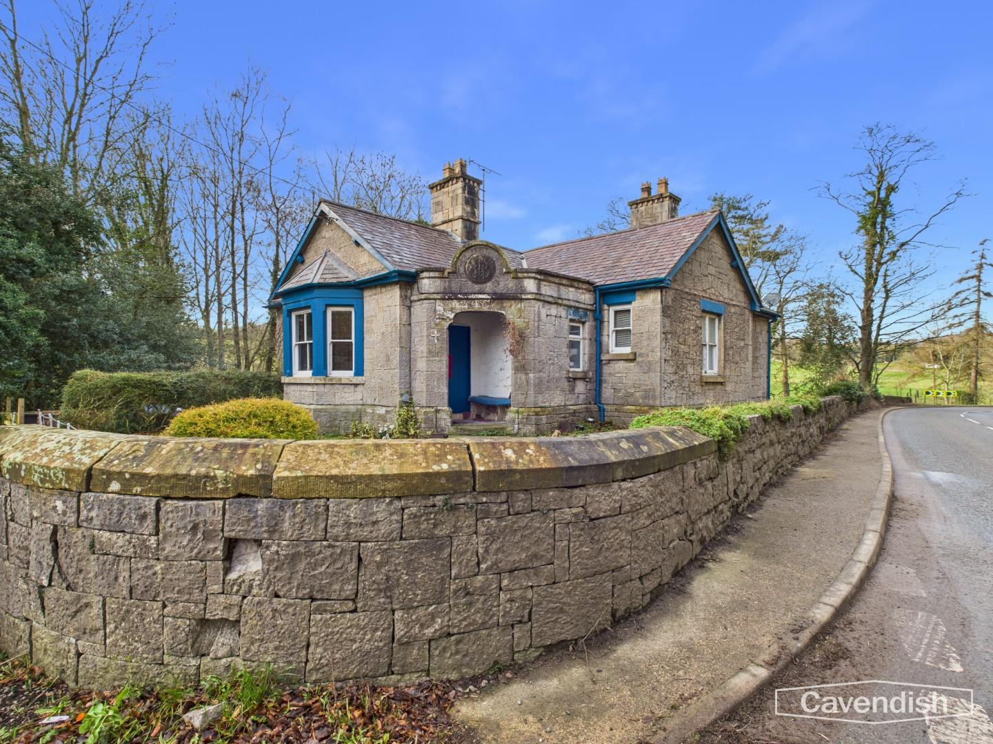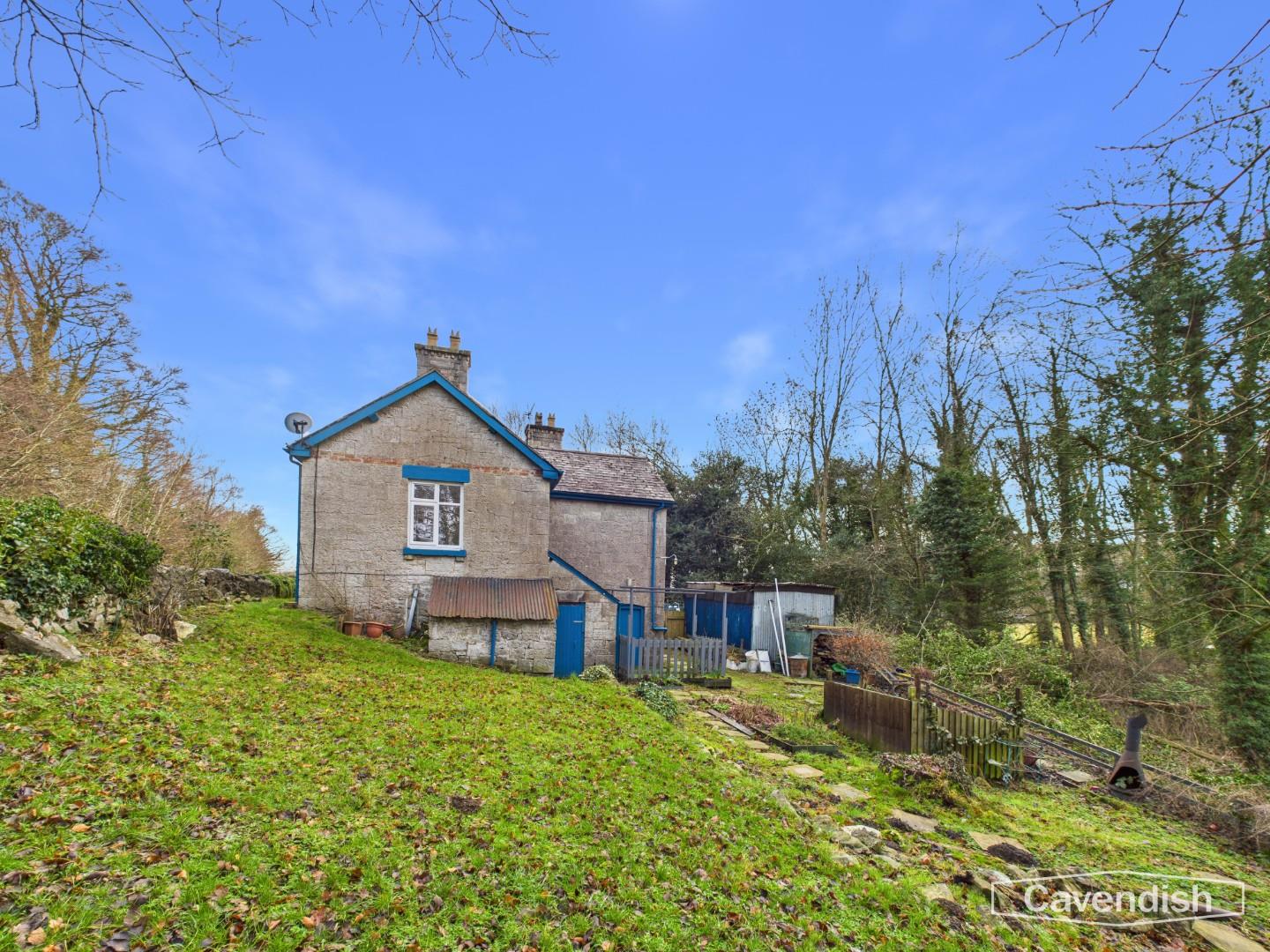 A character detached lodge set in gardens with a small woodland and enjoying beautiful views towards the Penbedw Estate, near Nannerch. The Penbedwr Estate was formerly owned by William Barber Buddicom, an established railway engineer, and the porch to the lodge still features a round tablet with the Buddicom monogram ‘WMB’ in raised letters. The property is a stone built single storey lodge with a basement and offers tremendous potential to improve and enhance. The accommodation briefly comprises: entrance porch with bench seat and quarry tile floor, living room with bay window overlooking the front and open fireplace, store room/small study, inner hallway, kitchen, bedroom one with exposed floorboards and built-in storage cupboards, bedroom two and a spacious bathroom with shower over the bath. The property benefits from oil fired central heating. Mold Lodge occupies a generous size plot extending to approximately 0.82 acres and is set within lawned gardens with driveway parking at the side and a woodland area. The property enjoys spectacular views to the rear over surrounding countryside and is located within the Clwydian Range & Dee Valley Area of Outstanding Natural Beauty (AONB). There is no onward chain involved in the sale of this property. The property would benefit from some updating and would make an ideal project for those looking to create a unique rural home.