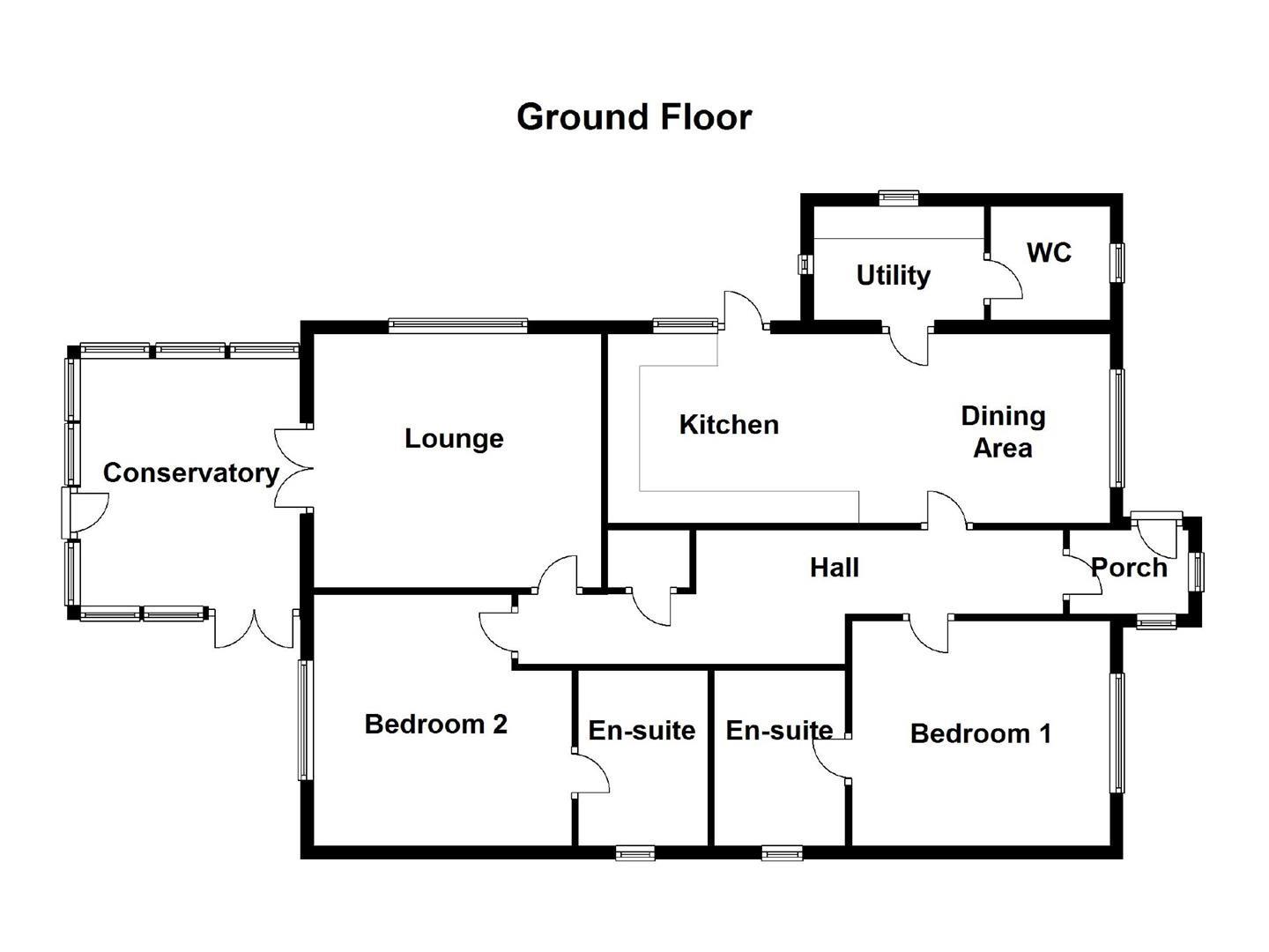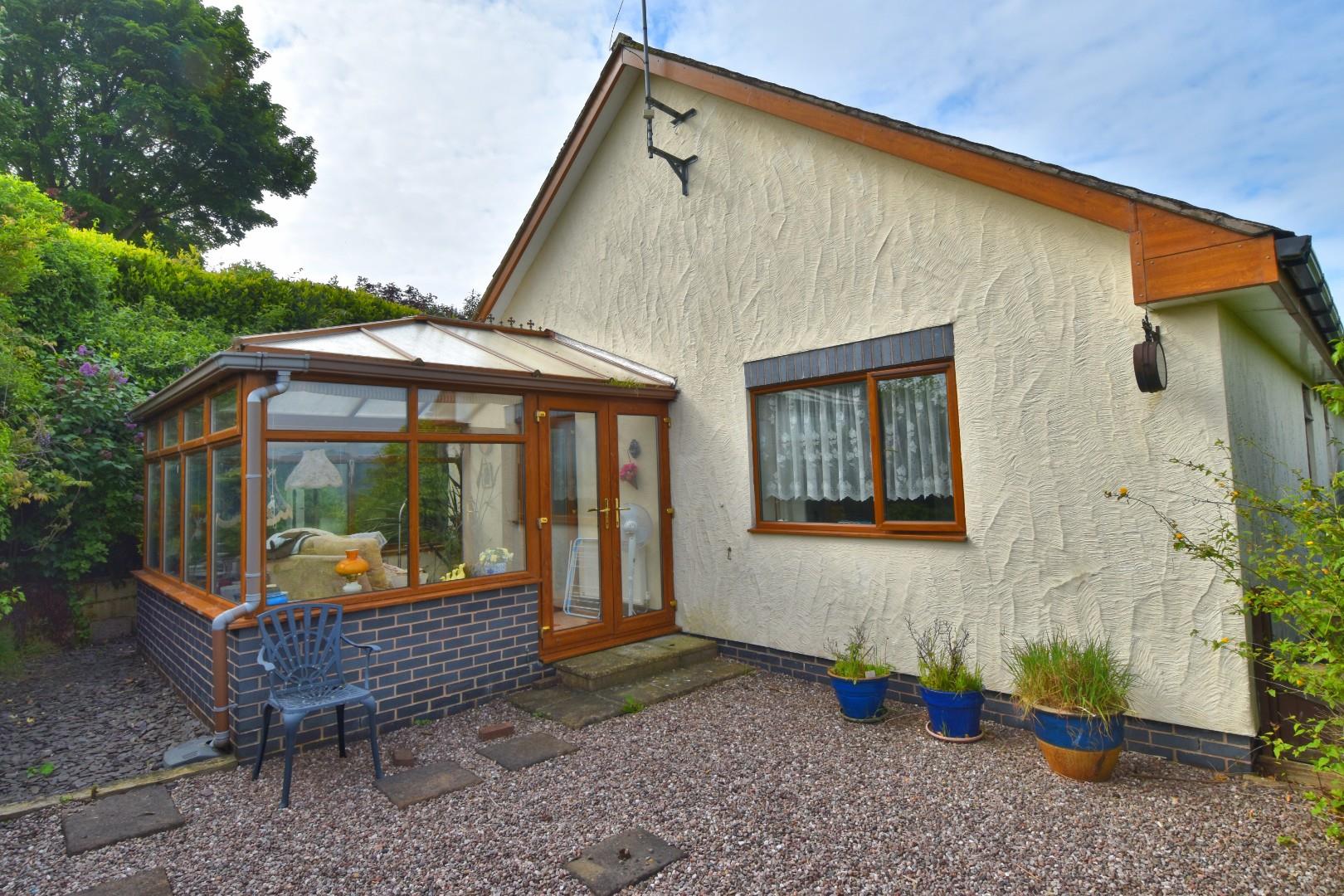 A DECEPTIVELY SPACIOUS TWO BEDROOM DETACHED BUNGALOW WITH GARAGE standing in a slightly elevated and secluded position to the upper part of Corwen approximately half a mile from the centre. Dating from 2004, the bungalow is designed to a spacious plan affording out built entrance porch, long central hall with study area and access to roof void, spacious lounge with adjoining conservatory, large fitted kitchen/dining room with utility room and cloaks, two double bedrooms both with en suite shower/bathroom. Double glazed with gas central heating, tarmacadam driveway providing parking and over sized single garage, low maintenance gardens.
