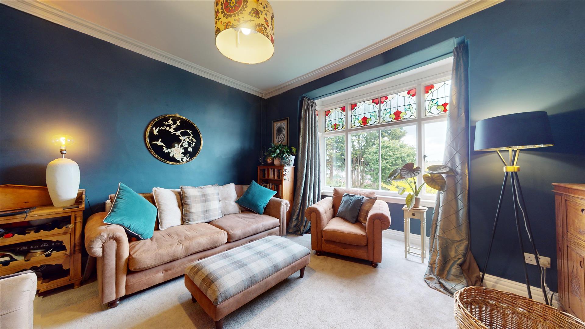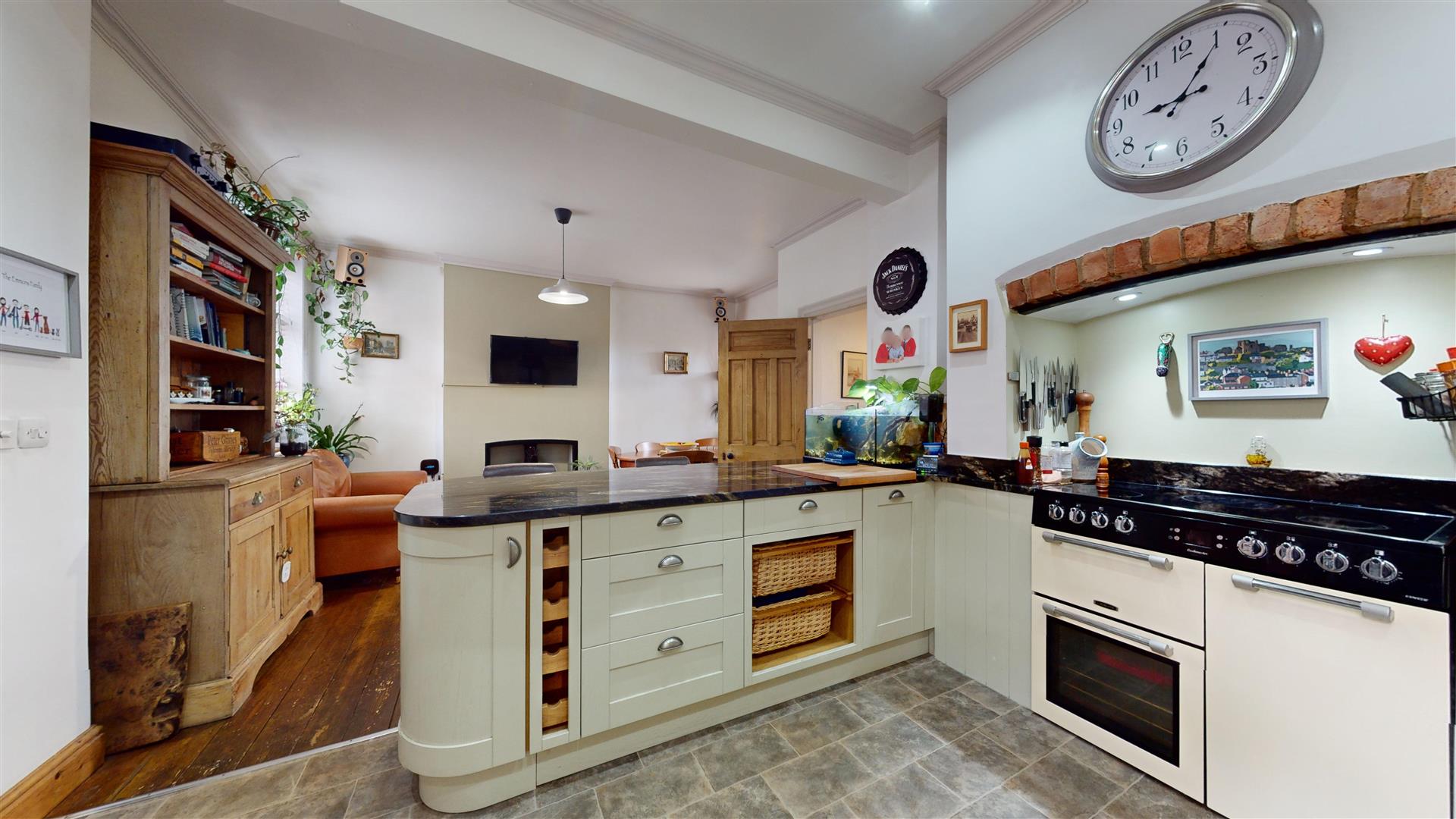 An attractive and well proportioned room with a wide bay window to the front elevation enjoying far reaching views over the town and across to the surrounding hillside. Feature wooden fireplace surround with brick inset, slate hearth and multi-fuel stove, decorative coved ceiling, TV aerial point and double panelled radiator.