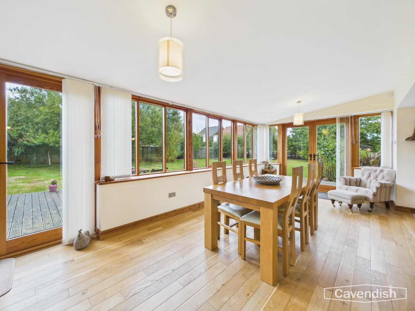To the rear there is a larger than average garden laid mainly to lawn with timber decked seating area enjoying two sets of French doors from the family room/dining area and a flagged patio area enjoying French doors from the living room. The garden is enclosed by wooden fencing and brick walling with mature trees and hedging. Timber built garden shed.