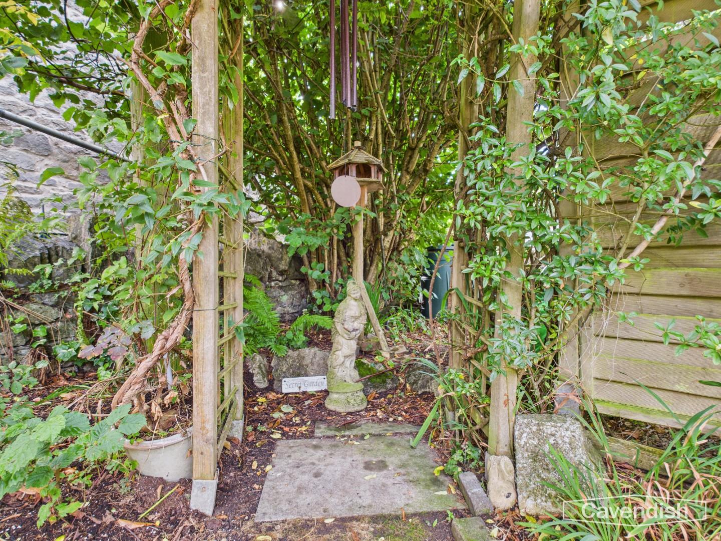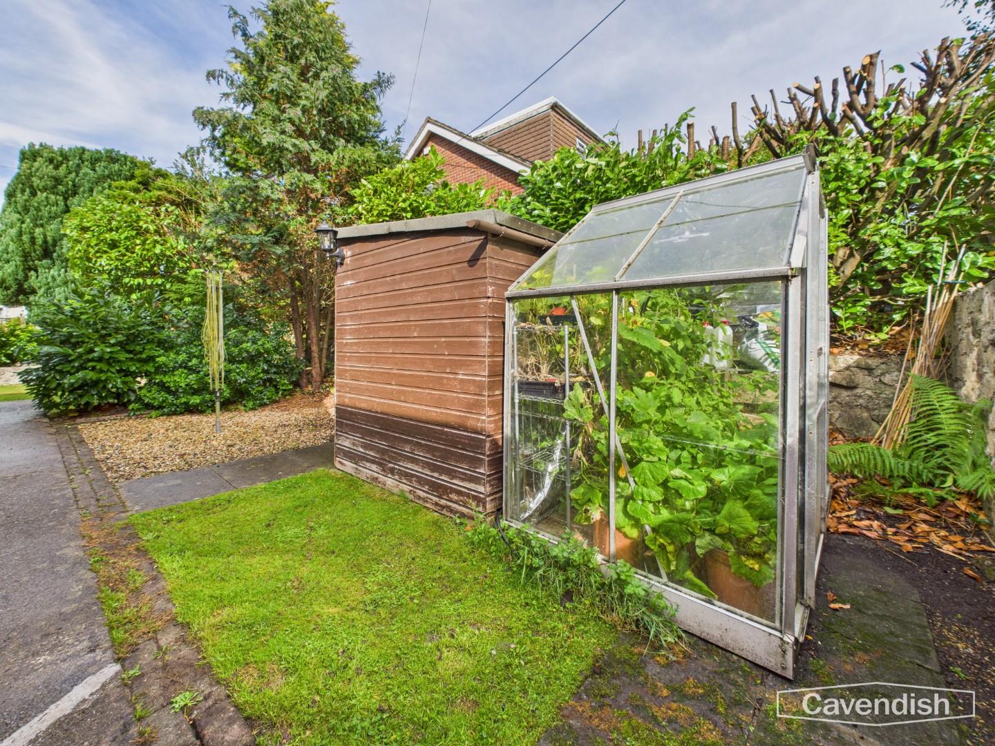 The property is approached via a five-bar wooden gate with stone pillars, which leads to a large block paved driveway and single garage. There is an additional hardstanding parking to the right hand side of the garage bounded to the village road by a substantial stone wall. There is a lawned area to the far side of the drive with raised and well stocked shrubbery borders with heathers and evergreens. To the left hand side of the property there is a clothes drying area, timber built garden shed and aluminium framed greenhouse. Pedestrian access extends to either side of the property with gates leading to the rear garden.