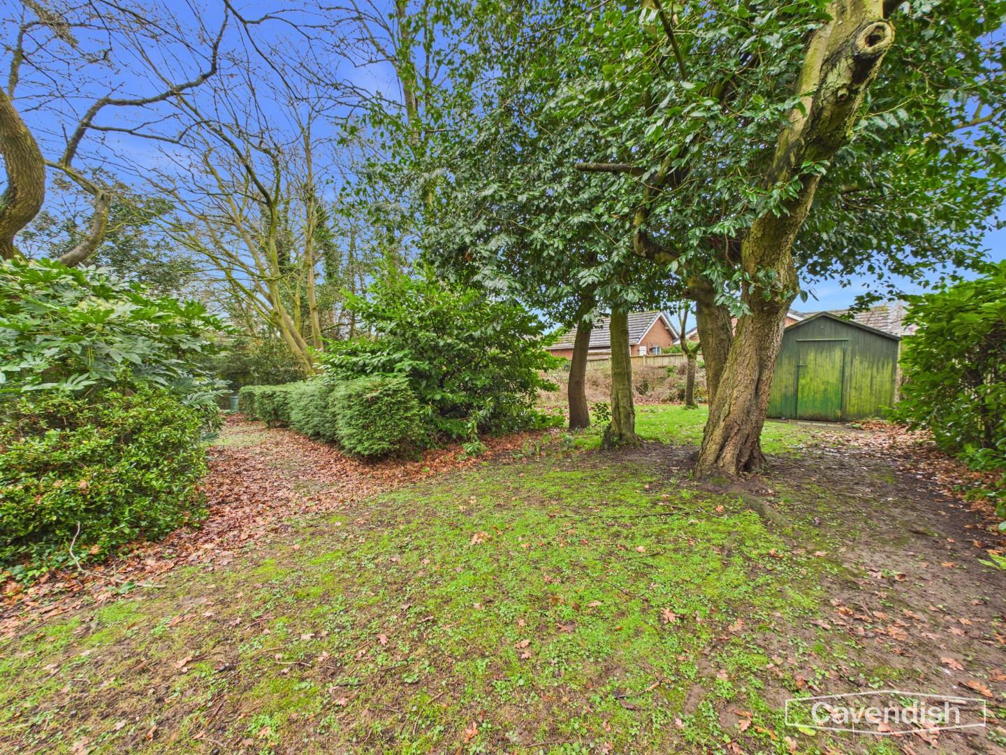 To the rear the garden is of a larger than average size being laid mainly to lawn with mature shrubs and trees and ornamental pond. Outside water tap, timber built garden shed. The rear garden is enclosed by wooden fencing and hedging.